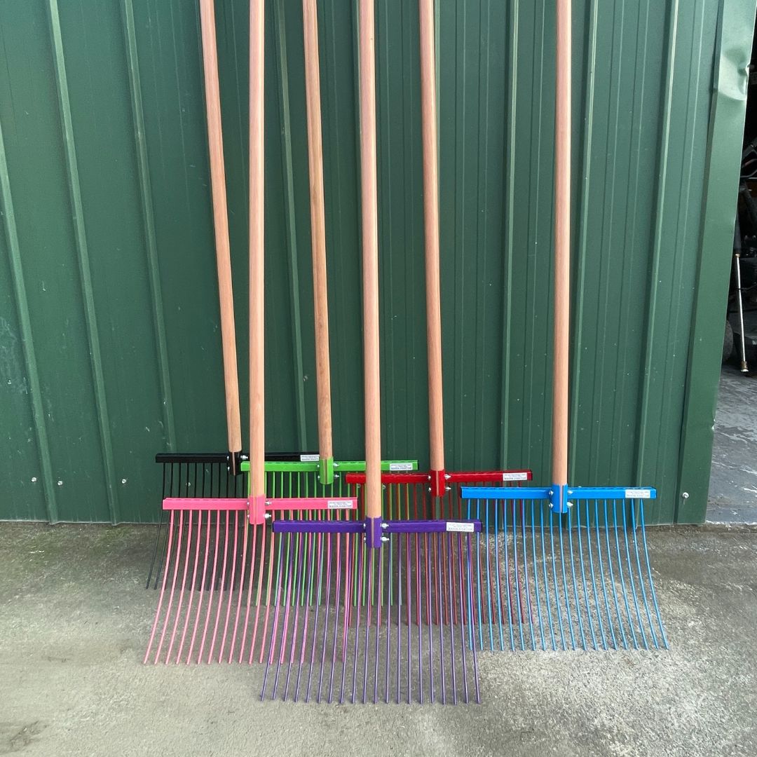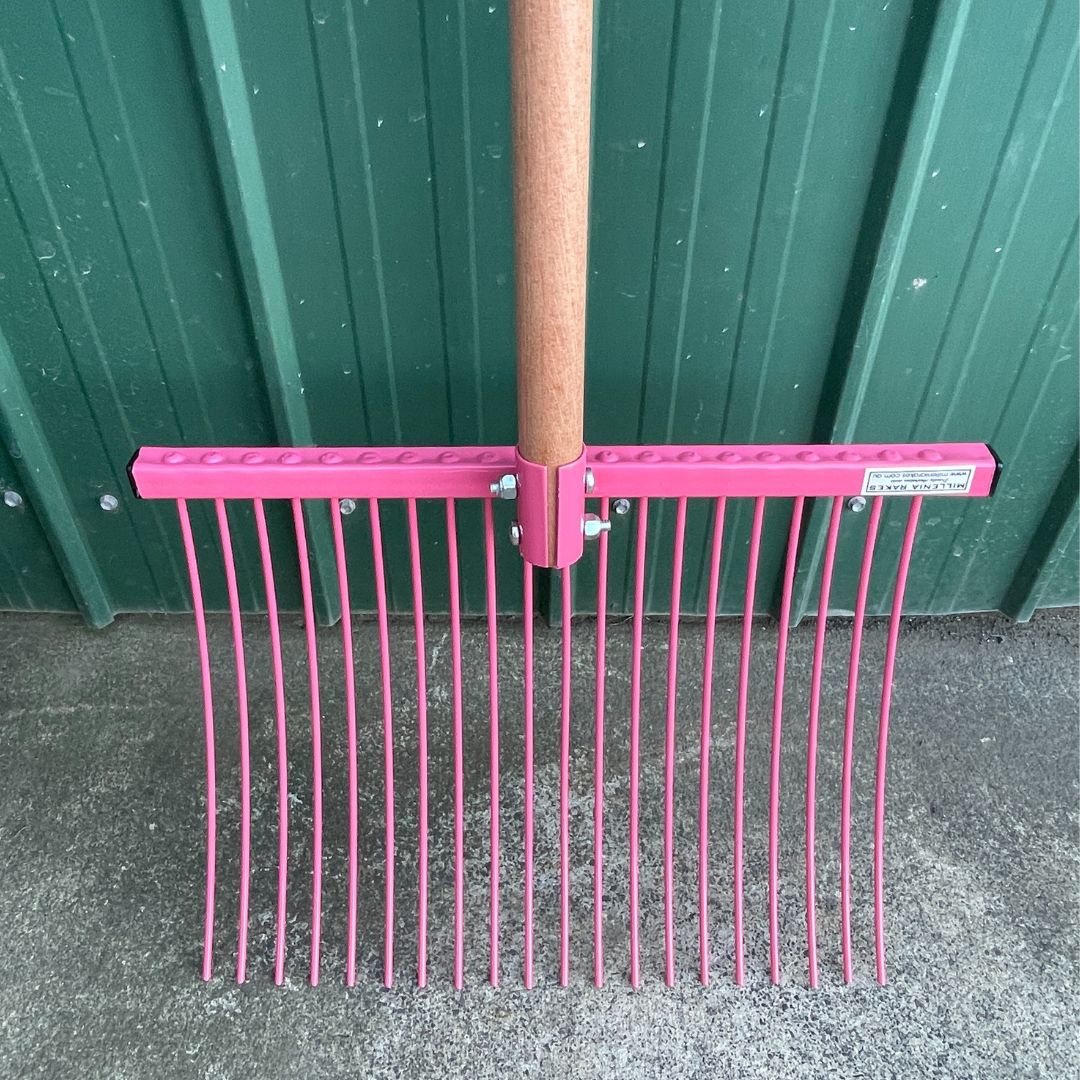 - Colour options of the rake vary; we usually have a range of Black, Blue, Lime Green, Pink, Purple, and Red. Millenia rakes are all powder coated with high quality DULUX colours.